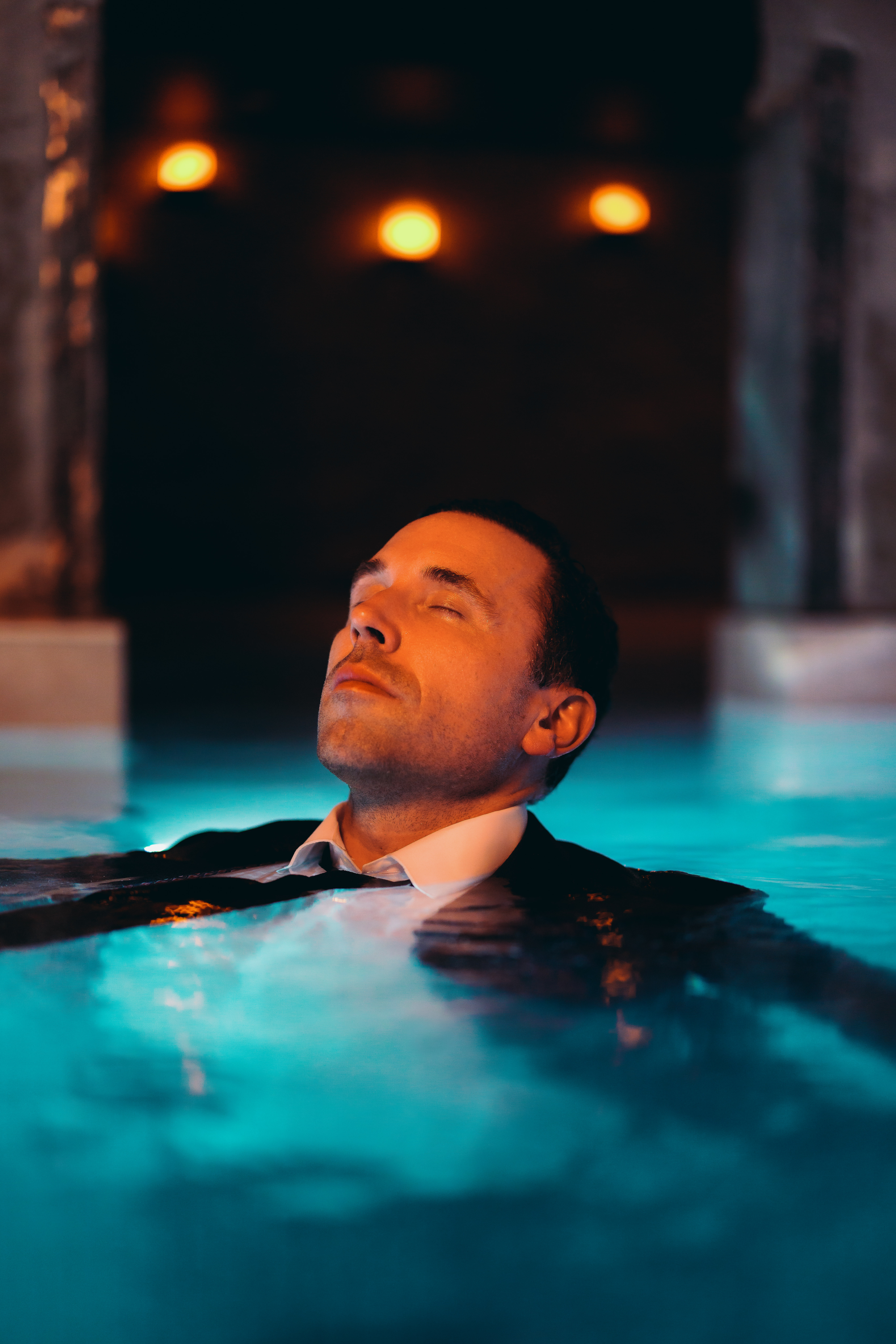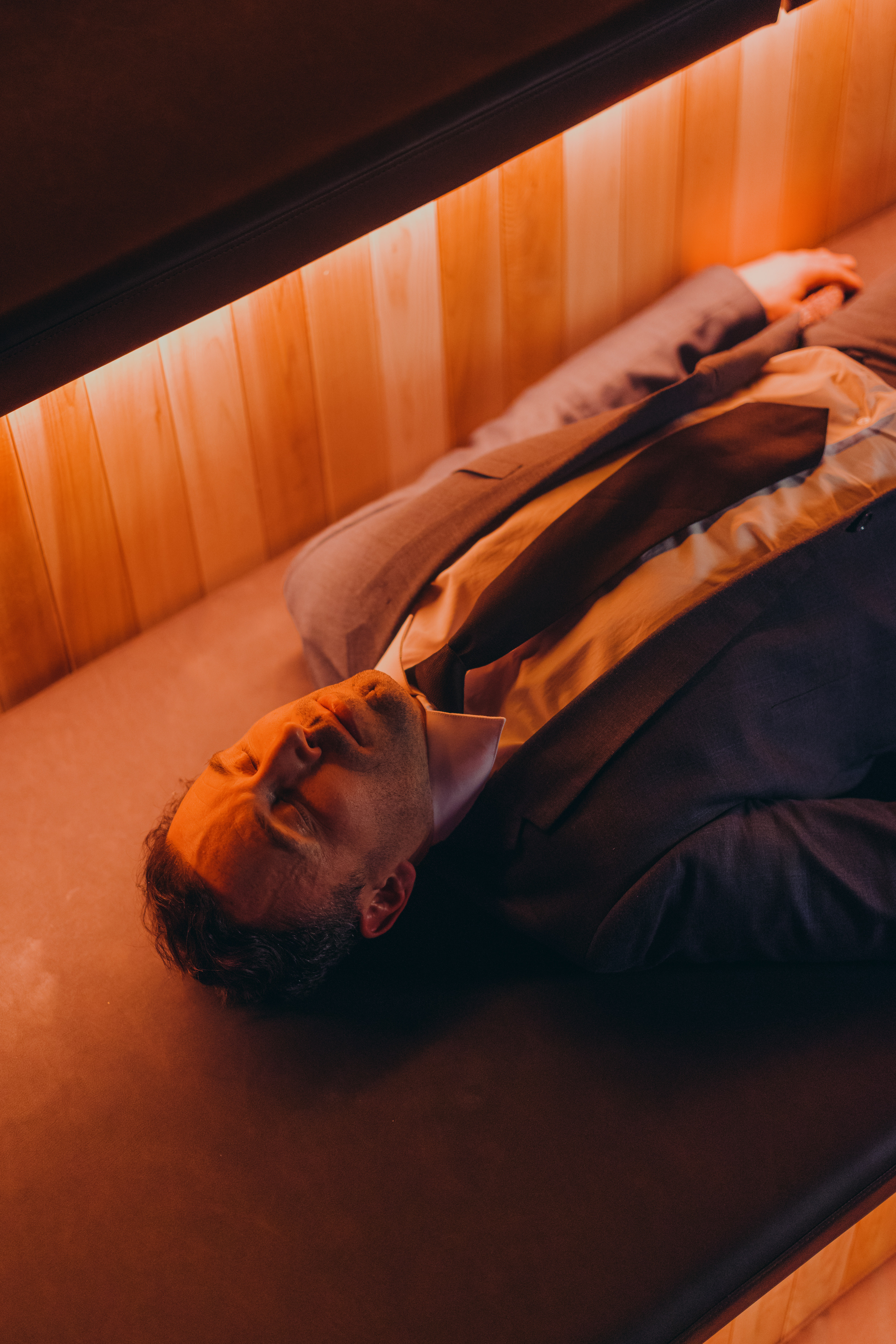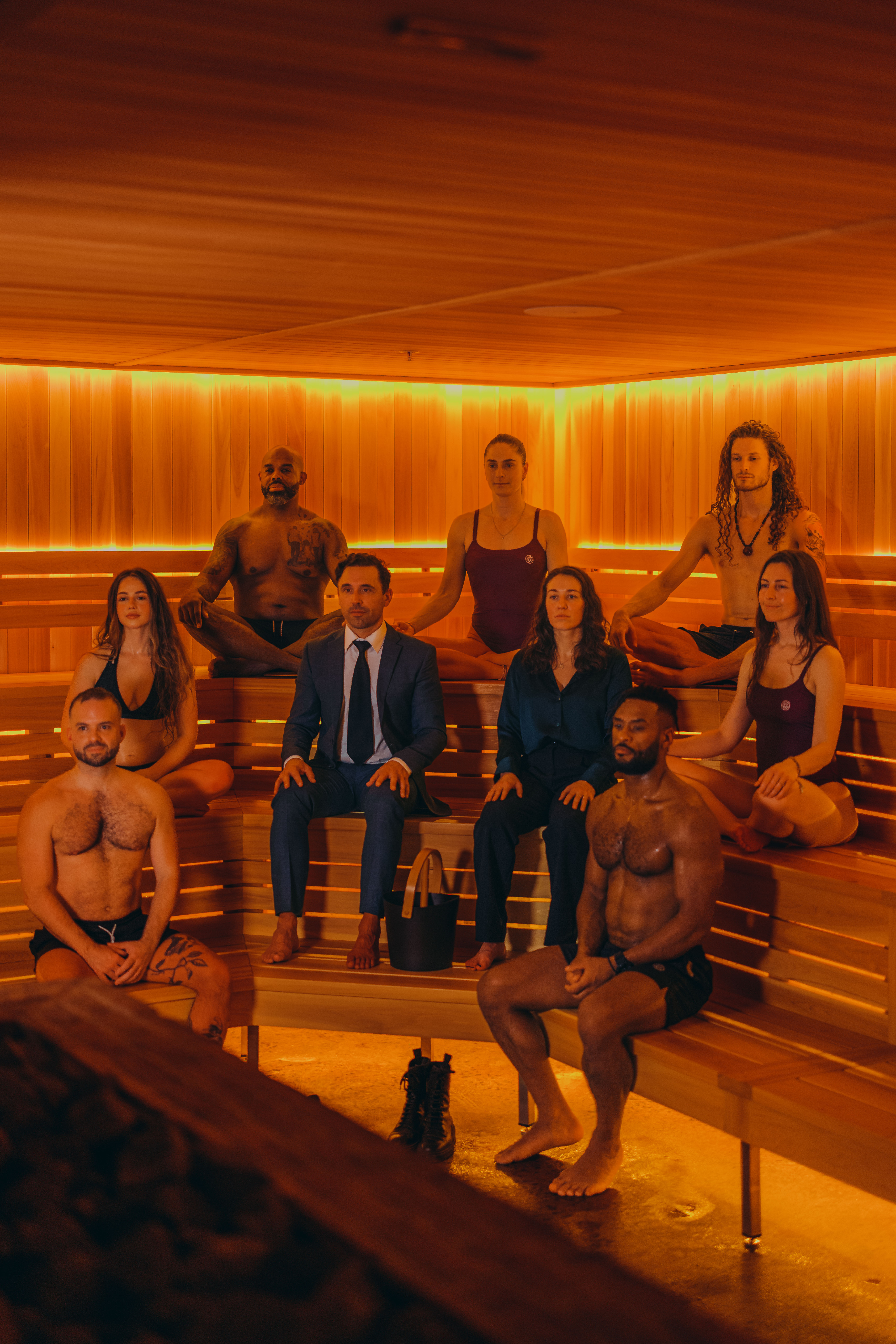 We made one creative decision before we walked on set: the person in the frame would be wearing a suit. Not as a visual contrast but as a genuine invitation. Joy's target isn't someone who already lives in wellness spaces. It's the downtown professional who hasn't given themselves permission yet. We built an emotional direction for each space: pride after the cold plunge, suspension in the thermal bath, stillness in the red light room. Every frame was filtered through one question: does this make someone want to see themselves in it? Not the spa smile. Not the wellness cliché. We directed to that standard, adjusted the lighting on set, and returned at dawn to capture the space empty.